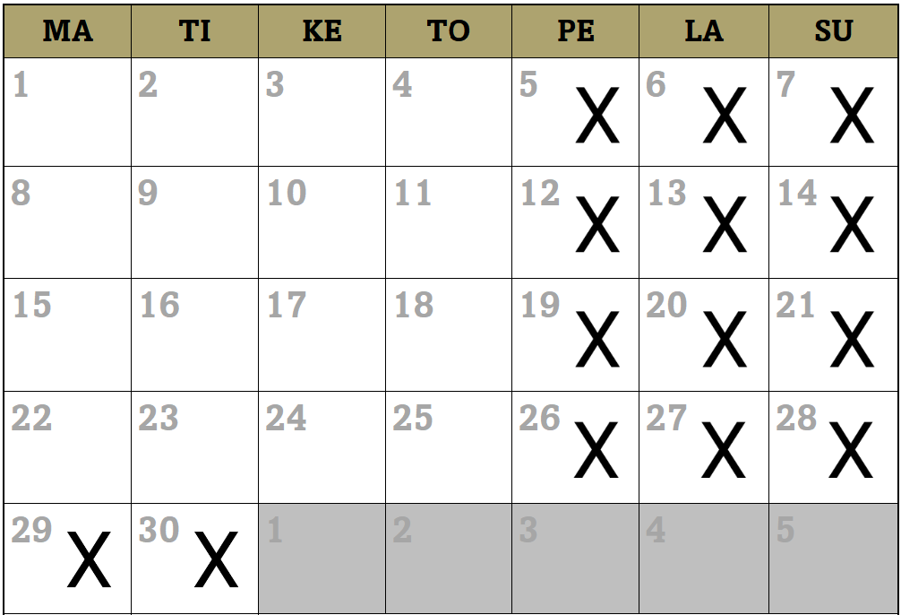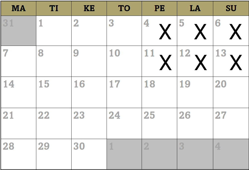 Varauskalenteri 2026