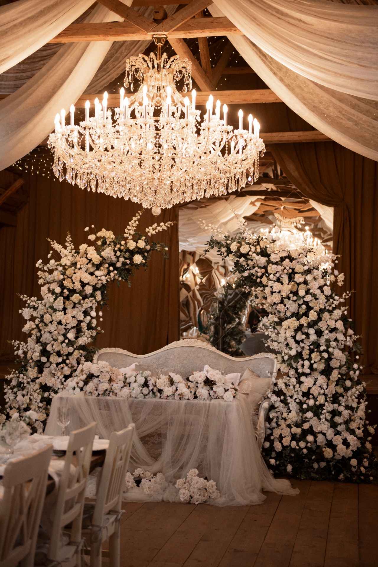 Tarjoilupöytä 4,8m pituus keskellä juhlatilaa